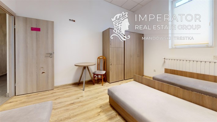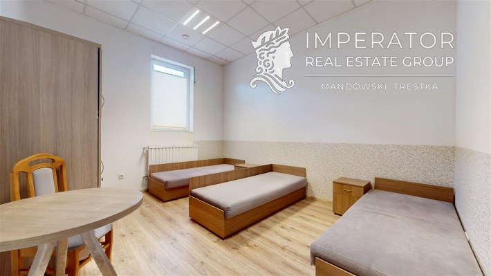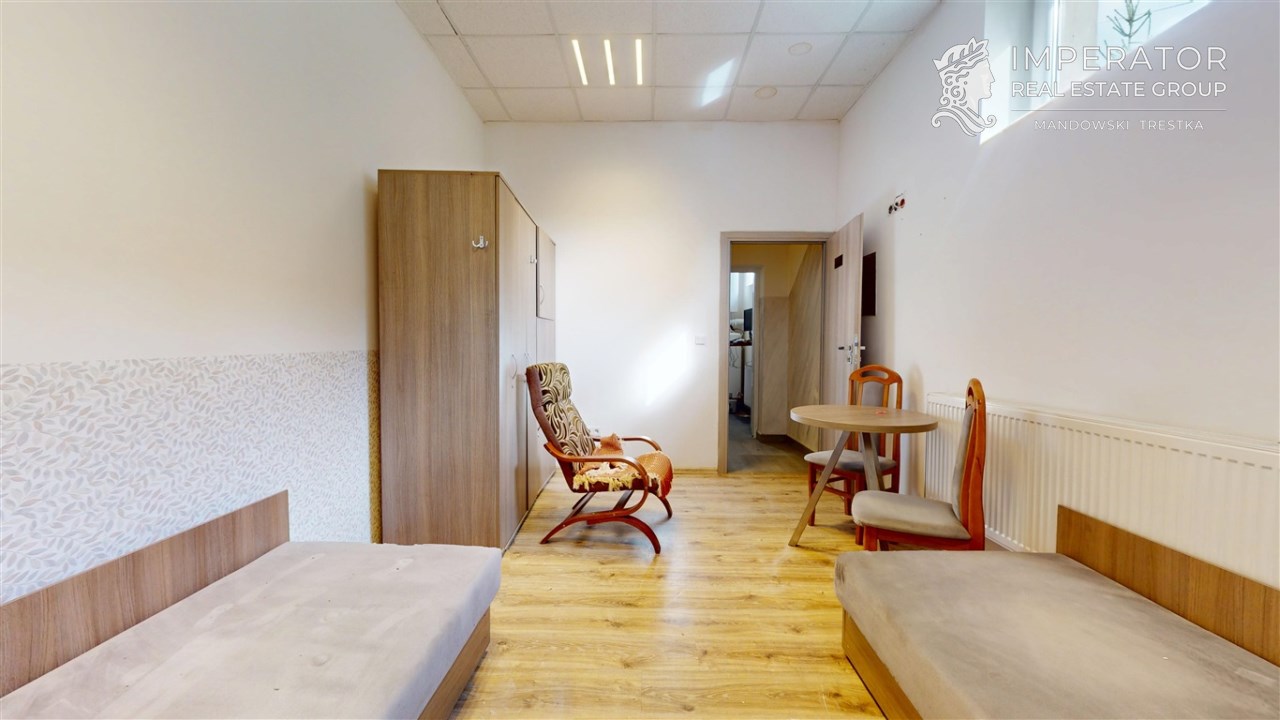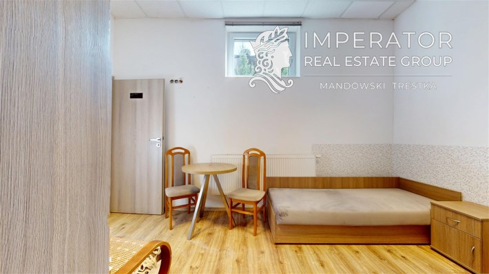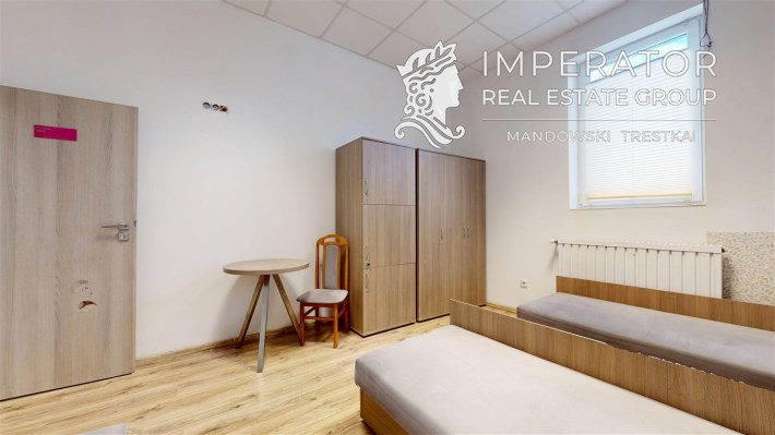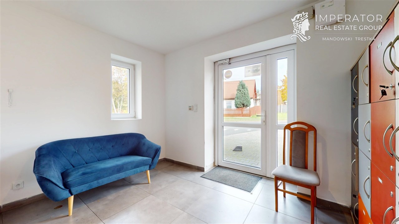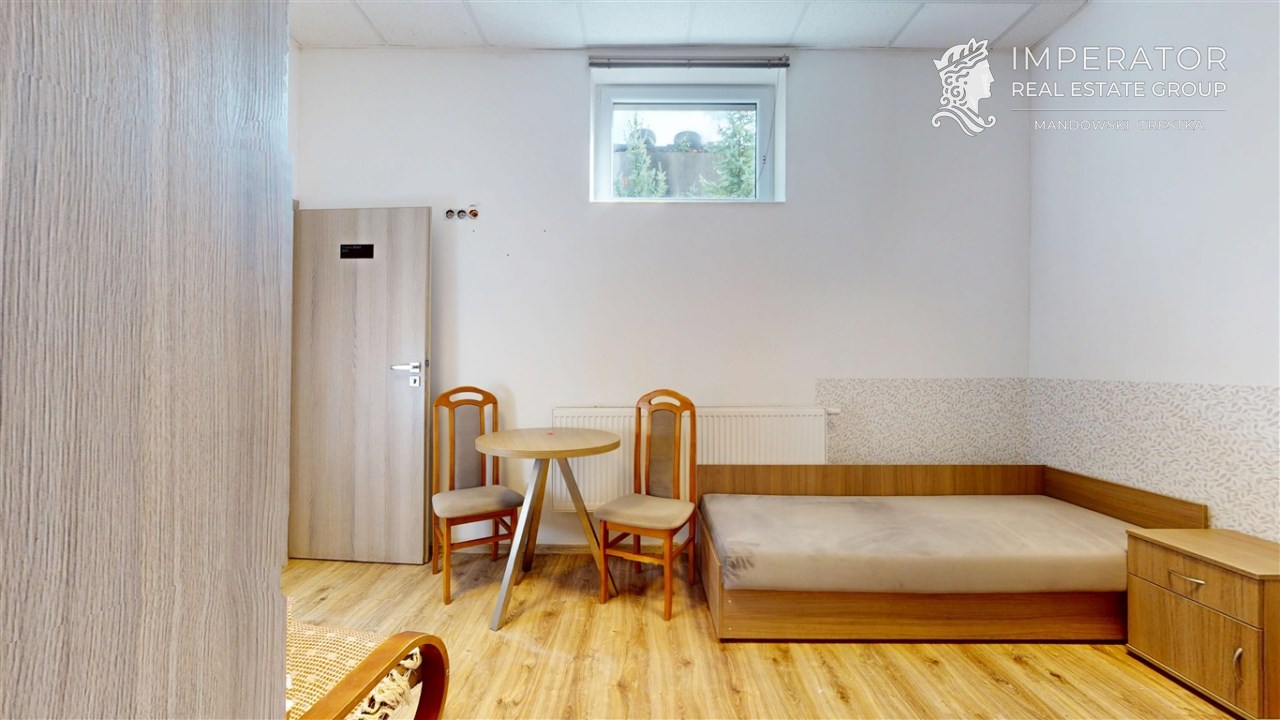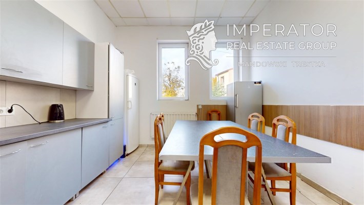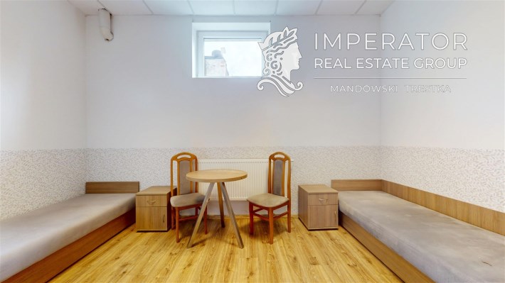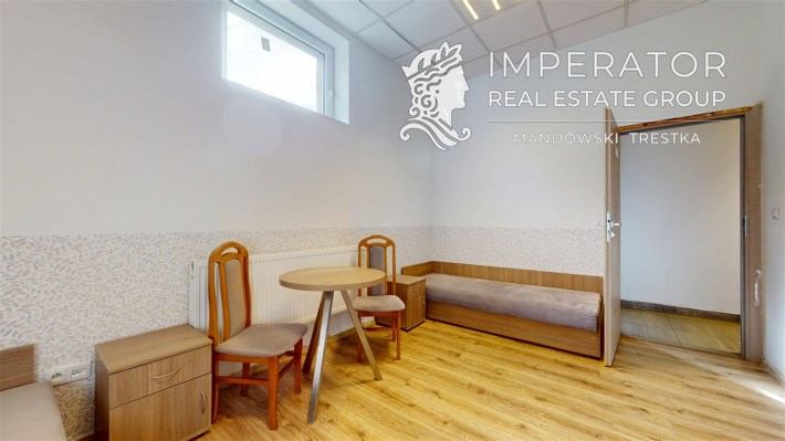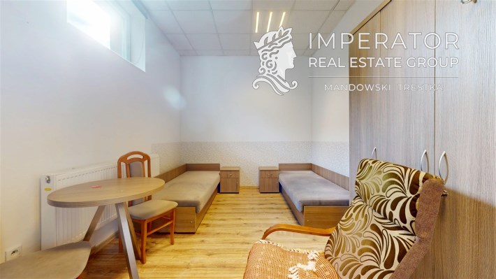 • A 300 m² square located behind the building, ideal for additional parking spaces or other commercial purposes. • Two utility rooms: the first with an area of 45 m² (closed), the second with an area of 30 m² (open). These rooms together with the square were rented for PLN 1,200 net per month, which is an additional income.