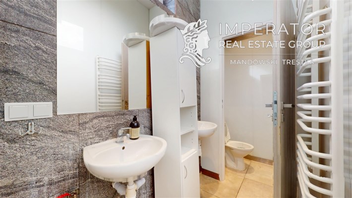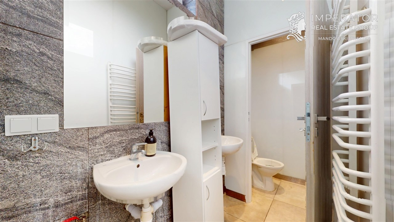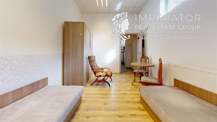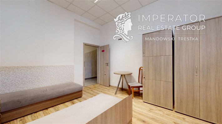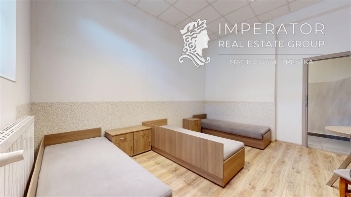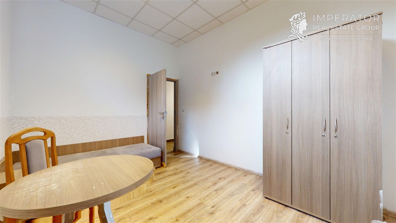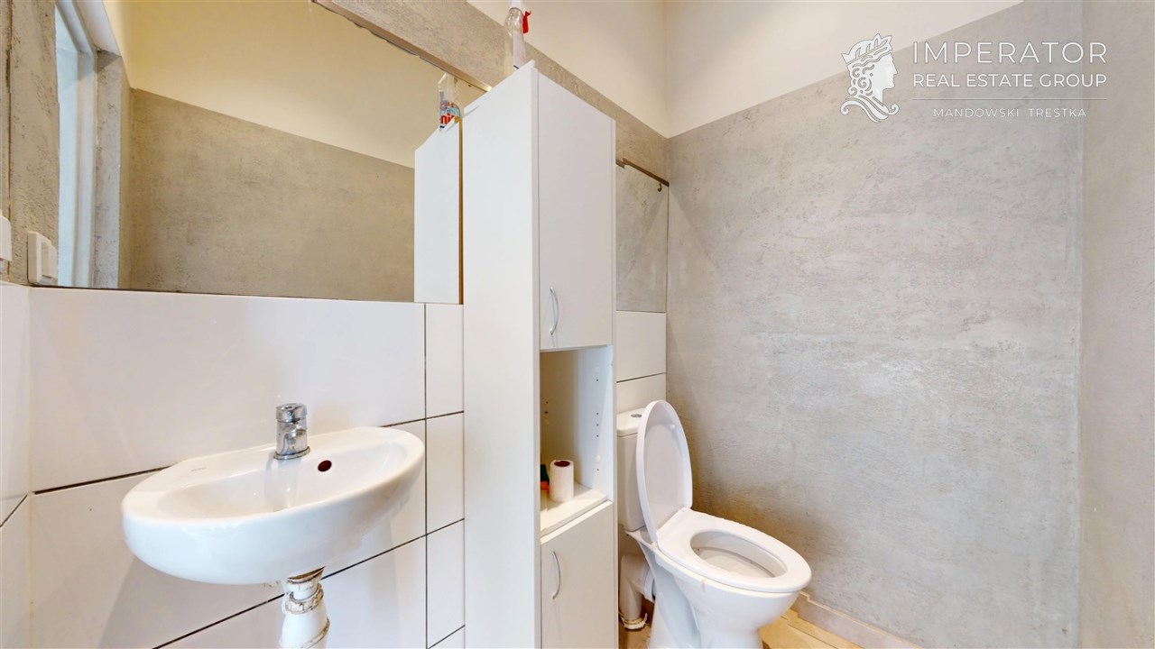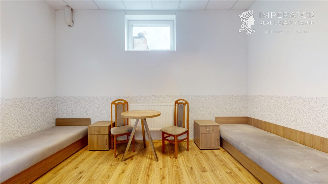 • A 300 m² square located behind the building, ideal for additional parking spaces or other commercial purposes. • Two utility rooms: the first with an area of 45 m² (closed), the second with an area of 30 m² (open). These rooms together with the square were rented for PLN 1,200 net per month, which is an additional income.