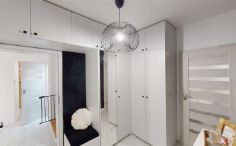 - SYPIALNIĘ z przejściem do GARDEROBY - dobrze wykorzystana przestrzeń wyposażona w liczne szafki, i miejsce do przechowywania ubrań czy prasowania