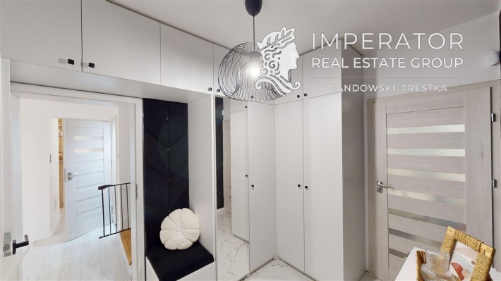 - WIATROŁAP - dobrze wykorzystana przestrzeń, bowiem wyposażona w dużą szafę z miejscem do siedzenia, dwie szafki na buty i konsolę
