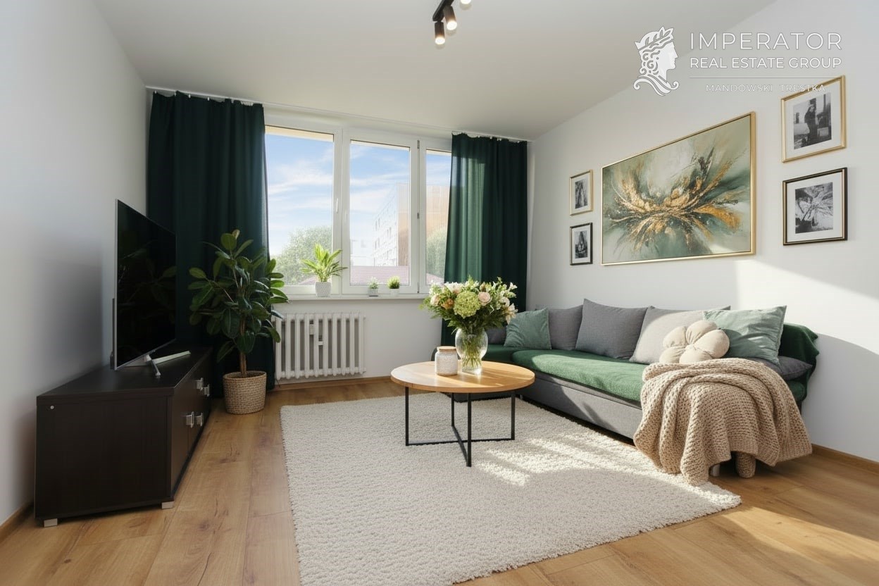 Dzięki przemyślanej aranżacji mieszkanie jest bardzo ustawne oraz funkcjonalne.
