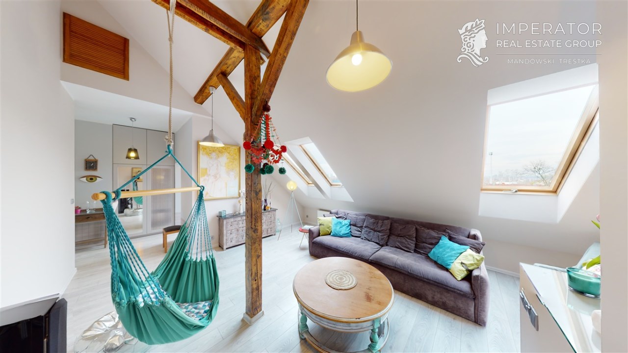 Klimatycznie zaprojektowana nieruchomość, w dobrej lokalizacji, o wyjątkowym klimacie skosów, odkrytych drewnianych belek konstrukcyjnych, wysokich, otwartych przestrzeni, 4 pokoje, aktualnie „odświeżone” (pomalowane), gotowe do zamieszkania, z czynszem na poziomie 415 zł!!!