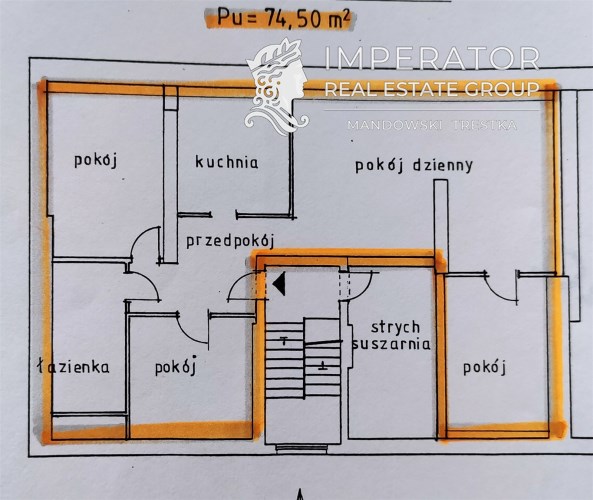 4 pokoje (74,5 m2 pow. użytkowa, po podłodze 111 m2) + komórka lokatorska (ok. 20 m2)